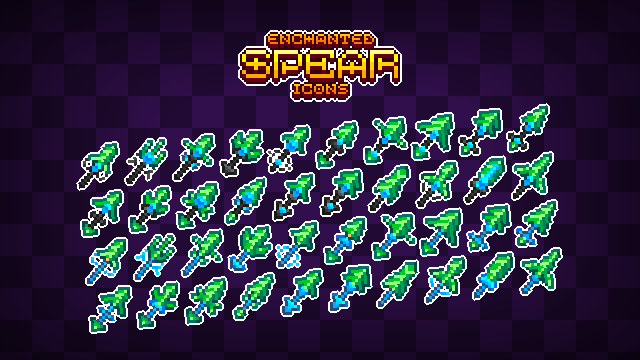Collection of pixel art enchanted weapon icons, perfect for adding a bit of magic to your game. Each icon is hand-crafted on a 16x16 canvas. Great for RPGs, roguelikes, or anything with a bit of fantasy flair.