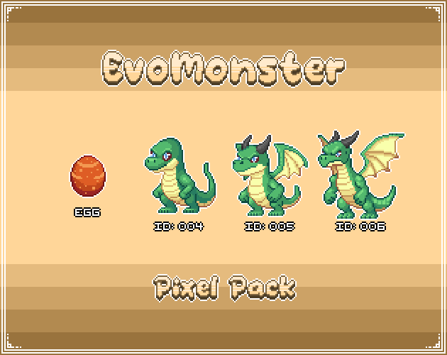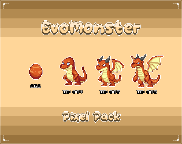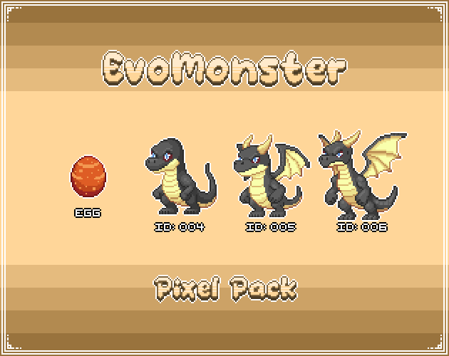 Get your EvoMonsters and start making your game. Each EvoMonsters Pack contains a monster with its own egg and evolutions, perfect for turn-based RPGs, JRPGs, and monster-capture games.