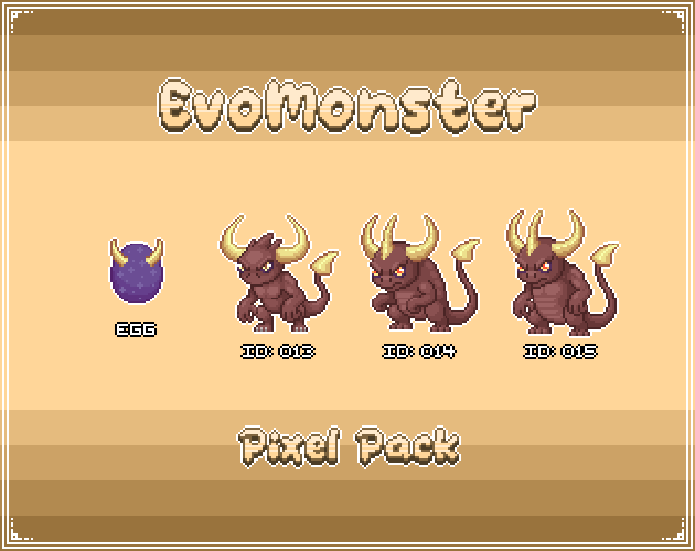 Get your EvoMonsters and start making your game. Each EvoMonsters Pack contains a monster with its own egg and evolutions, perfect for turn-based RPGs, JRPGs, and monster-capture games.