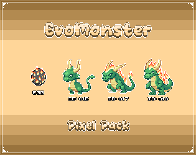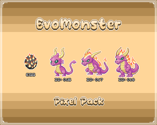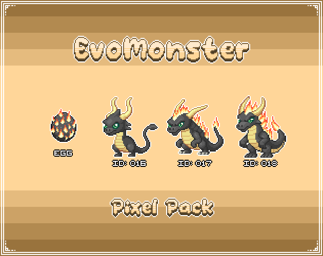 Get your EvoMonsters and start making your game. Each EvoMonsters Pack contains a monster with its own egg and evolutions, perfect for turn-based RPGs, JRPGs, and monster-capture games.