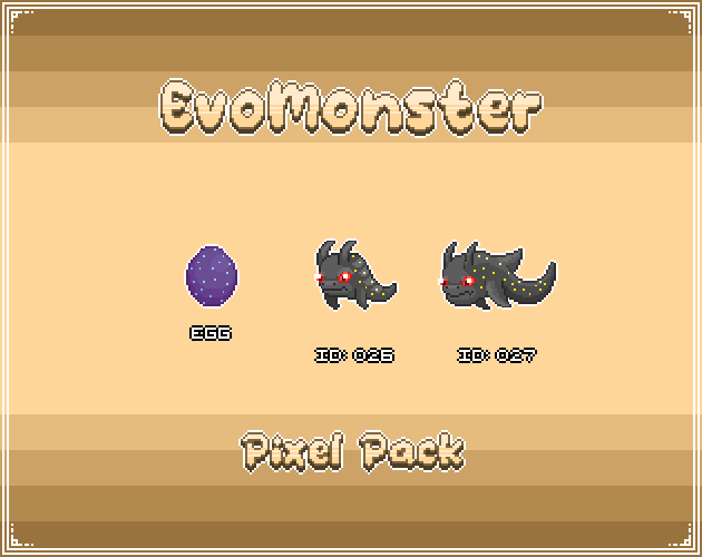 Get your EvoMonsters and start making your game. Each EvoMonsters Pack contains a monster with its own egg and evolutions, perfect for turn-based RPGs, JRPGs, and monster-capture games.