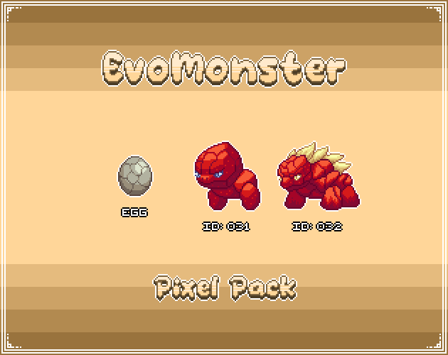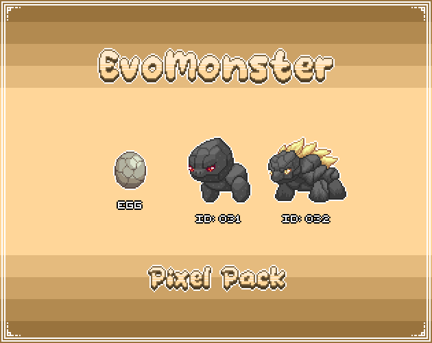 Get your EvoMonsters and start making your game. Each EvoMonsters Pack contains a monster with its own egg and evolutions, perfect for turn-based RPGs, JRPGs, and monster-capture games.