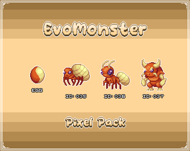 Get your EvoMonsters and start making your game. Each EvoMonsters Pack contains a monster with its own egg and evolutions, perfect for turn-based RPGs, JRPGs, and monster-capture games.