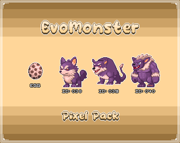 Get your EvoMonsters and start making your game. Each EvoMonsters Pack contains a monster with its own egg and evolutions, perfect for turn-based RPGs, JRPGs, and monster-capture games.