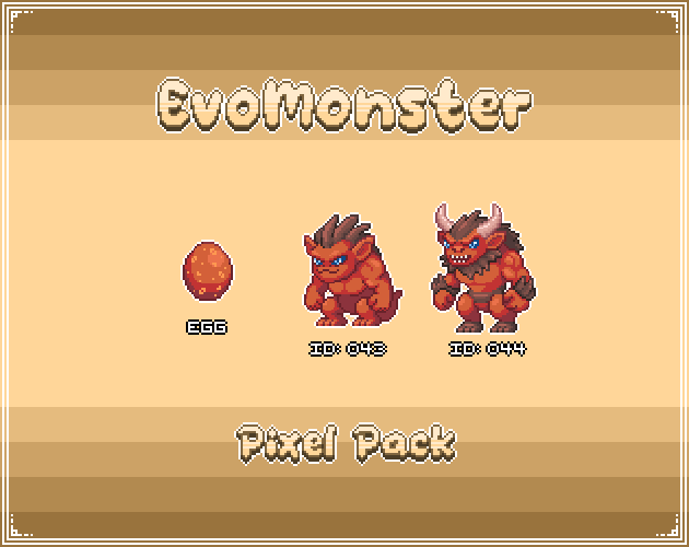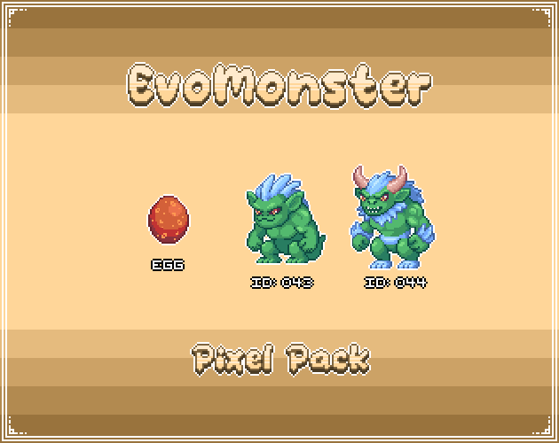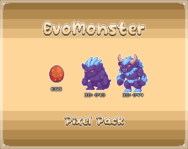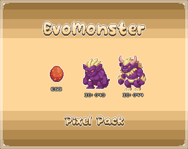 Get your EvoMonsters and start making your game. Each EvoMonsters Pack contains a monster with its own egg and evolutions, perfect for turn-based RPGs, JRPGs, and monster-capture games.