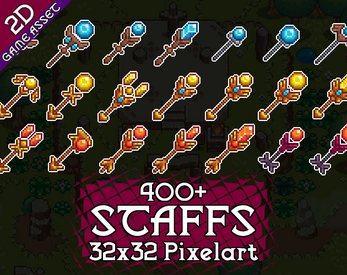 This exceptional pack offers an impressive collection of 80 unique staffs crafted in 32x32 pixel art. With 5 distinct variations for each staff, you'll find yourself equipped with an total of 480 staffs to choose from.